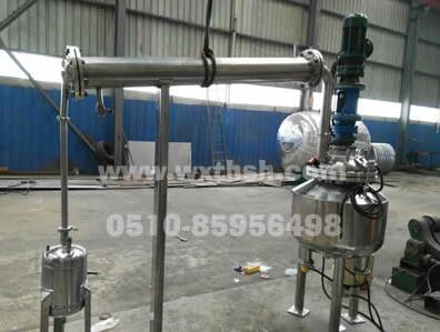 本全套裝置是用于生產不飽和聚酯樹脂、酚醛樹脂、環氧樹脂、ABS樹脂、油漆的關鍵設備。全套設備由反應釜、豎式分餾柱、臥式冷凝器、貯水器、溢油槽、管線(對稀釜)等組成,全套反應釜設備與物料接觸部分均采用不銹鋼制作。